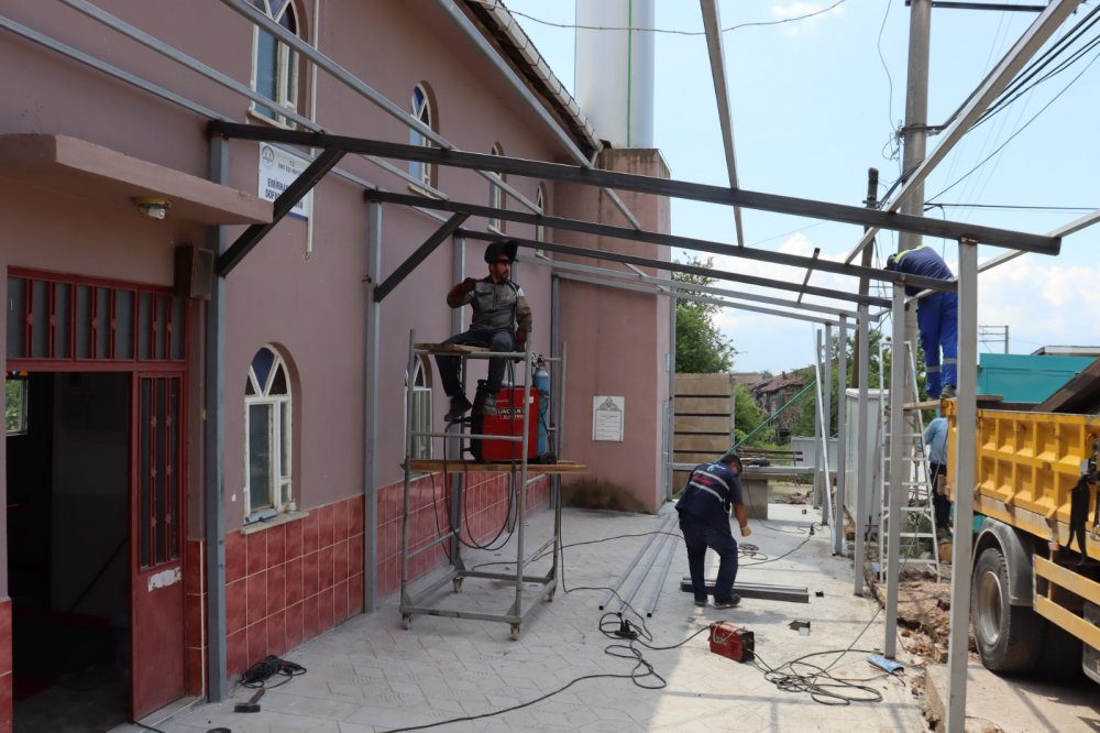 İzmit Belediyesi, cemaatin rahatça ibadet edebilmesi için Emirhan Mahallesi’nde bulunan Sofuoğlu Camii’nin avlusuna sundurma yapıyor.