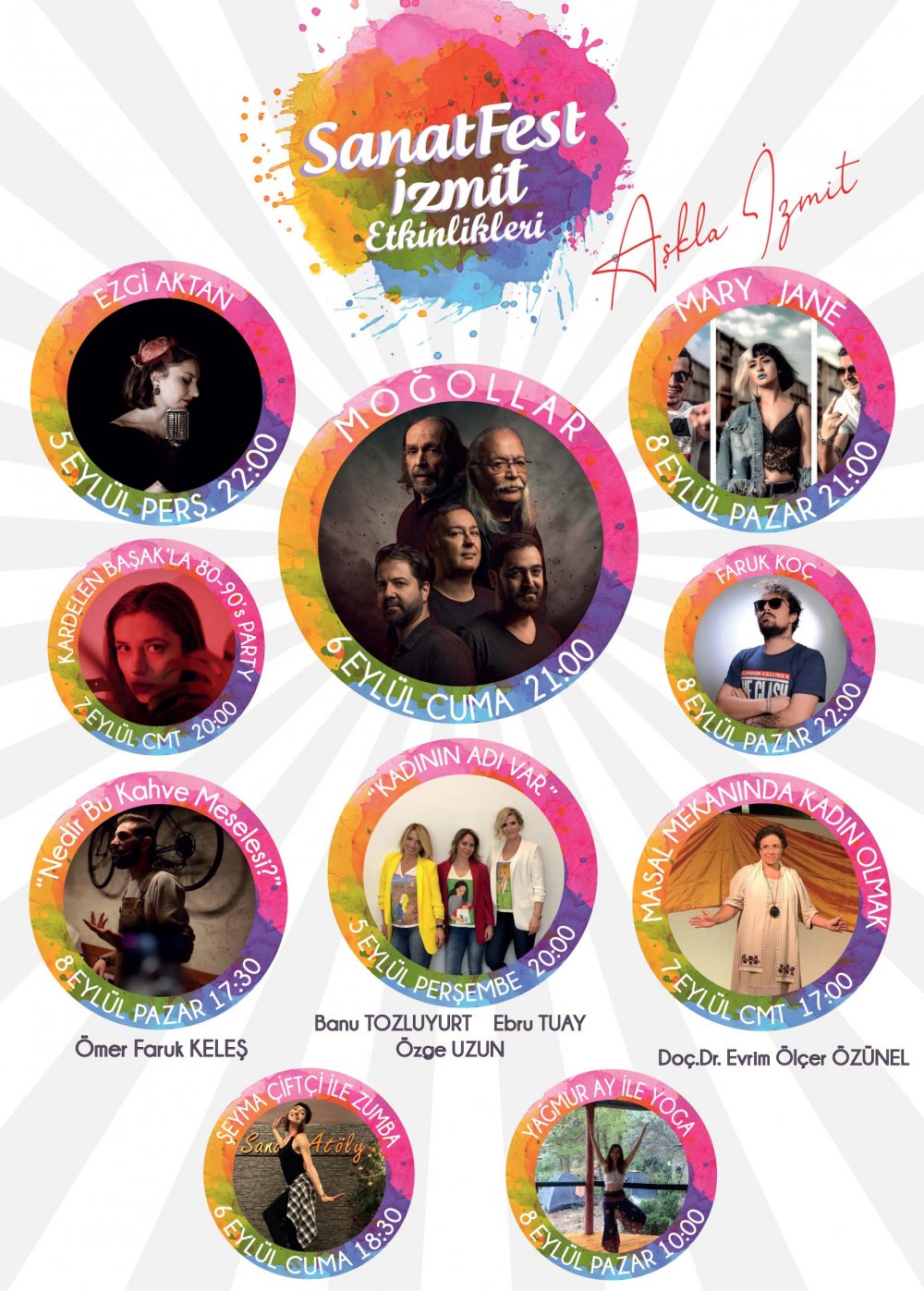 Ezgi Aktan ve Mary Jane’nun sahne alacağı festivalde Moğollar müzik gurubu da İzmitlilere unutulmaz anlar yaşatacak. Önümüzdeki yıllarda uluslararası boyuta taşınmak istenen festival, Türk el emeği üreticisinin ürünlerini yurtdışına ulaştırmak amacı da taşınmaktadır.