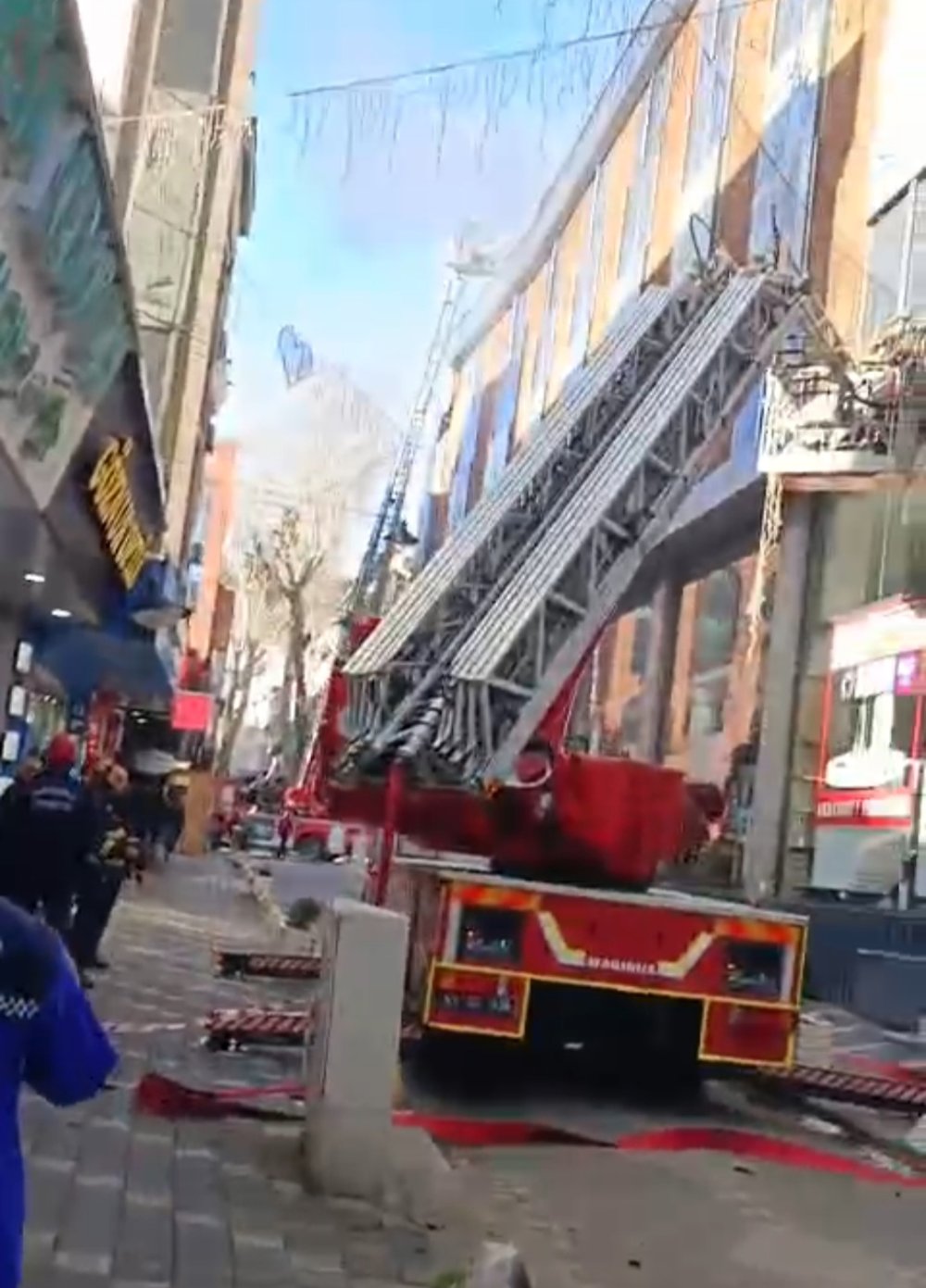 İtfaiye ekipleri yangını kontrol altına alabilmek için binanın farklı noktalarından müdahalede bulunurken, polis ekipleri de olay yerinde geniş güvenlik önlemleri aldı.