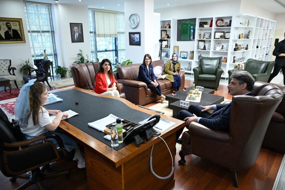 Kartepe Belediye Başkanı Av. M. Mustafa Kocaman, koltuğunu 23 Nisan Ulusal Egemenlik ve Çocuk Bayramı münasebetiyle Karatepe İlkokulu Öğrencisi öğrencisi Nevra Zeynep Başer’e devretti.