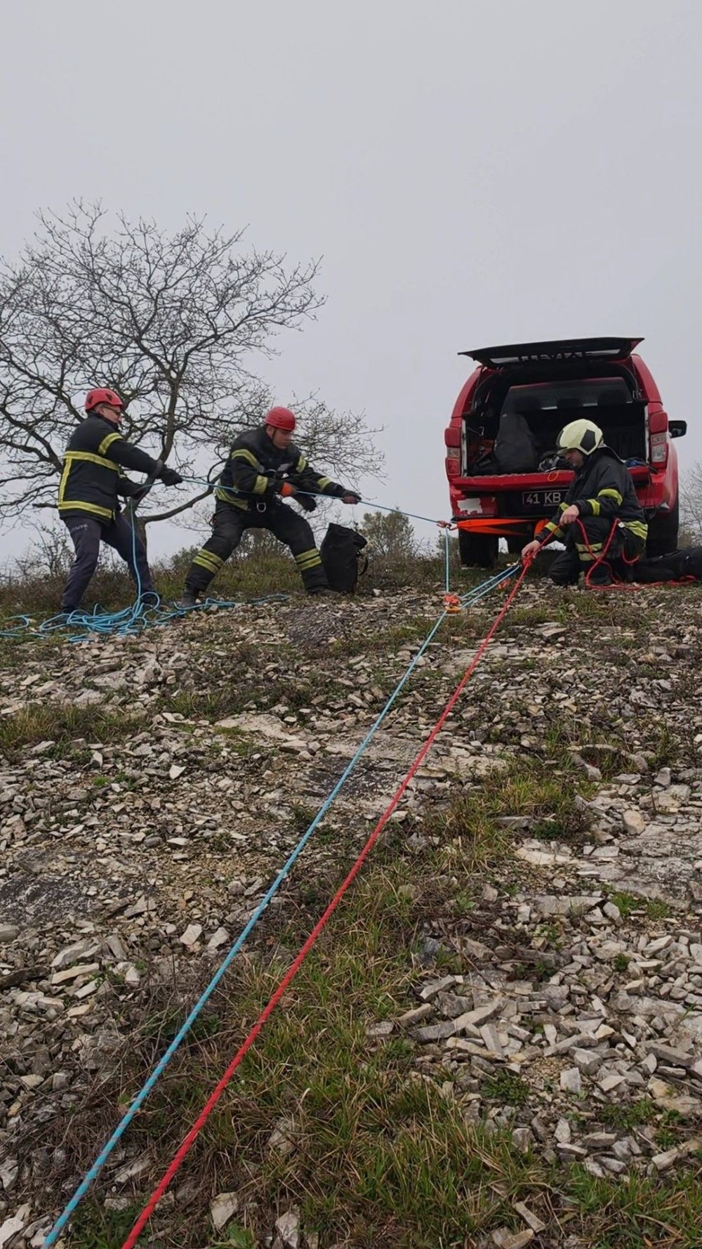 Kocaeli Büyükşehir Belediyesi İtfaiye Dairesi Başkanlığı, yalnızca yangın ve acil durumlarda değil, tüm canlılar için 7/24 görev başında olmaya devam ediyor. Bunun son örneği İzmit Sarıhocalar mevkiinde yaşandı. 15 keçi ve oğlak’ın sarp arazide mahsur kaldığı ihbarını alan ekipler, hemen hayvan barınağı üzerindeki eski taş ocağı bölgesine sevk edildi. Metrelerce yükseklikteki kayalıklara özel halat sistemleri kurarak inen itfaiye ekipleri, zorlu hava ve fiziki şartlara rağmen titiz bir operasyon yürüttü. Zorlu arazi şartlarında gerçekleştirilen çalışma sonucunda 15 keçi ve oğlak, bulundukları yerden kurtarılarak sahiplerine teslim edildi.
