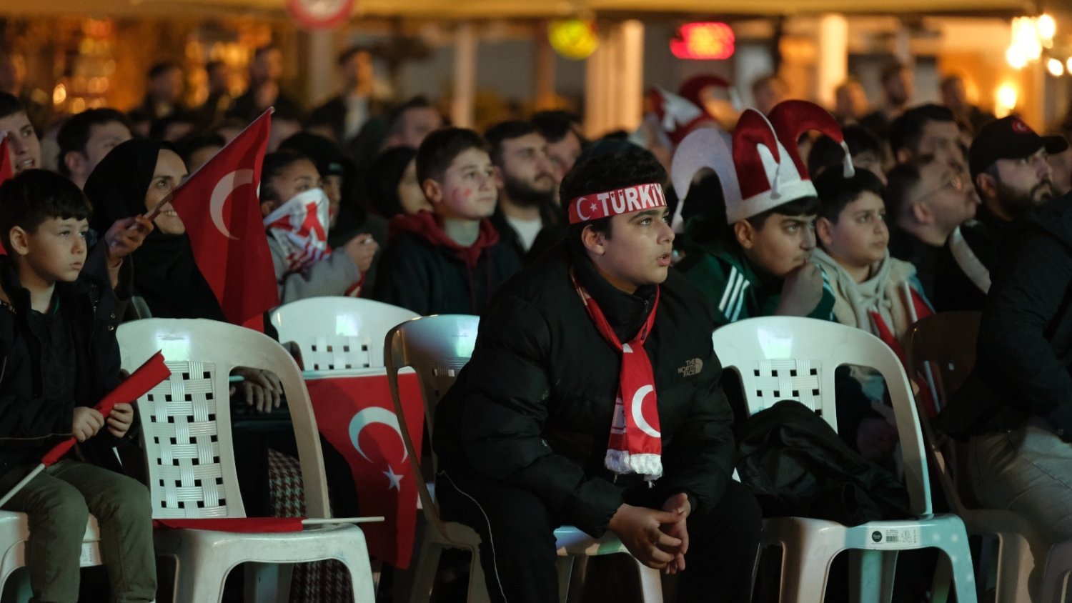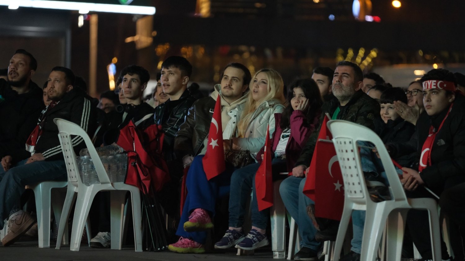 Kocaelililer, milli heyecana Büyükşehir Belediyesi’nin kurduğu dev ekranda ortak olarak millilere omuz omuza destek verdi. Kent Meydanı’nı tıka basa dolduran ve millilerimizin sahadaki azmine tezahüratlar ile eşlik eden Kocaelili futbolseverler, İzmitli Kerem Aktürkoğlu'nun 53. dakikada kaydettiği golle adeta sevinç yumağı oluşturdu. Milli Takımımızın geliştirdiği her atakta büyük bir heyecan yaşayan Kocaelililer, maçın bitiş düdüğü ile birlikte İzmit Kent Meydanı’nı bayram yerine çevirdi. “Kırmızı-Beyaz... Şampiyon Türkiye” tezahüratıyla meydanı adeta inleten Kocaelililer, Milli Takımımızın Dünya Kupası vizesi almasının gururunu hep birlikte yaşadı. Ay-Yıldızlı ekibin zaferi doyasıya kutlanırken, meydanda oluşan birlik ve beraberlik görüntüleri geceye damga vurdu.