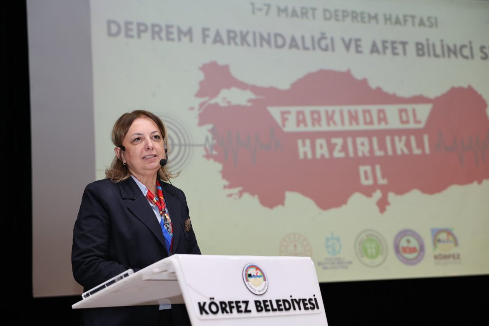 Körfez Kaymakamı Uğur Kalkar da deprem gerçeğini unutmadan hareket edilmesi gerektiğinin altını çizerek, güvenli bir gelecek için çalışmaların kararlılıkla sürdürüldüğünü belirtti. Konuşmaların ardından Kocaeli Üniversitesi Öğretim Üyesi Prof. Dr. Fadime Sertçelik tarafından sunum gerçekleştirildi. Sertçelik’in konuşmasının ardından kendisine plaket takdim edildi.