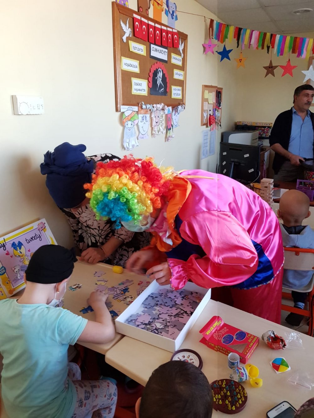 İYİ Parti İlçe başkanı Pelin Coştur Filiz, 2-8 Kasım Lösemili Çocuklar Haftası’nda KOÜ Hastanesi’ndeki çocuklar için palyaço kıyafeti giyerek yüzlerindeki tebessüm oldu.