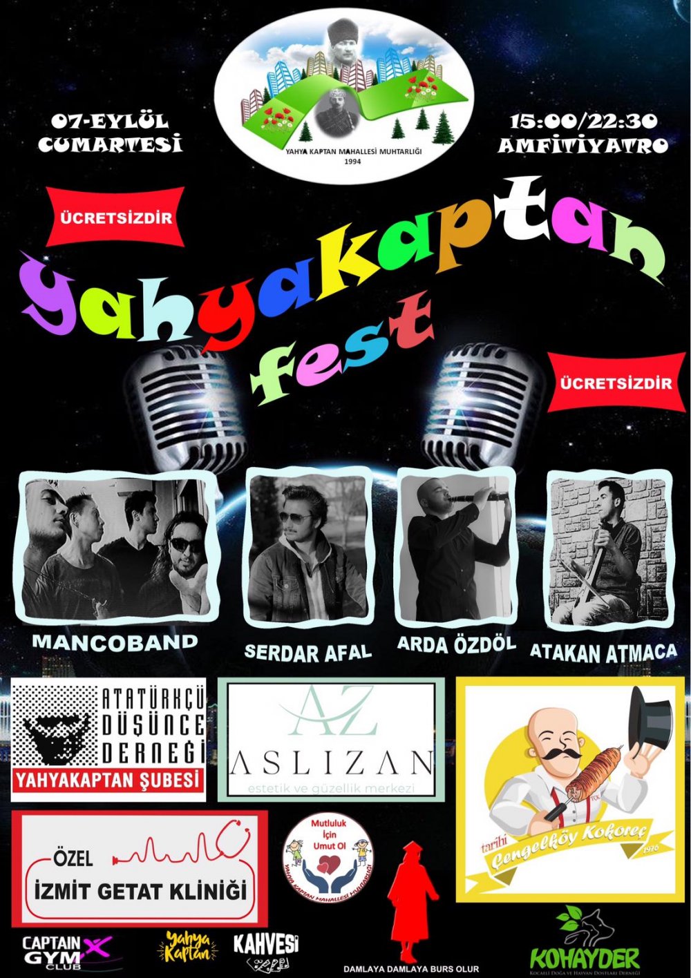 İzmit Yahya Kaptan Mahallesi Muhtarlığı geleneksel hale getireceği festivalin duyurusunu yaptı. Mahallede faaliyet gösteren kurum ve kuruluşların sponsorluğunda hayata geçirelecek olan “Yahya Kaptan Fest” adı festival Yahya Kaptan mahallesi Amfitiyatro alanında ücretsiz olarak gerçekleşecek.