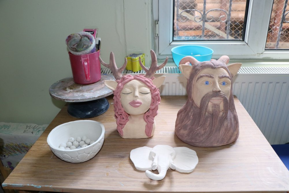 Büyükşehir Belediyesi Beyaz Kalpler Eğitim ve Gelişim Merkezi’nde eğitim gören Muhammet Akın, seramikten yaptığı eserlerle beğeni topluyor.