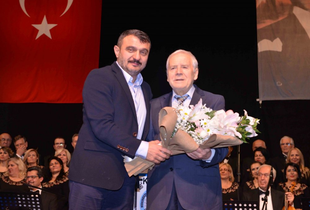 Kocaeli Büyükşehir Belediyesi tarafından SDKM’de düzenlenen Büyükşehir Musiki Derneği Türk Sanat Müziği Korosu Geleneksel Güz Konseri, musiki severlere tadına doyulmaz bir müzik ziyafeti yaşattı. Türk Sanat Müziği severlerin birbirinden eşsiz bestelerle sanat müziğine doyduğu bir akşamda, katılımcılar eserlere eşlik etti. Büyükşehir Belediyesi Başkan Vekili Zekeriya Özak ve Genel Sekreter Yardımcısı Dr. Ali Yeşildal’ın katıldığı konser sonunda Musiki Derneği Türk Sanat Müziği Korosunun 25 yıl şefliğini yapan Erdinç Çelikkol’a ve şef Murat Büyükkaya’ya Genel Sekreter Yardımcısı Dr. Ali Yeşildal tarafından çiçek takdim edildi.