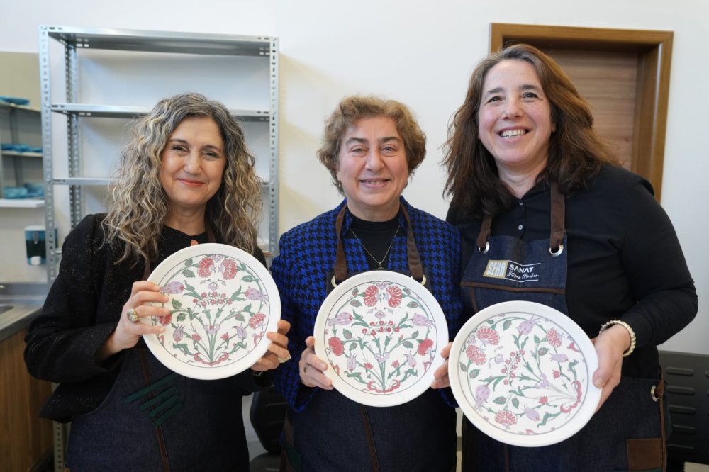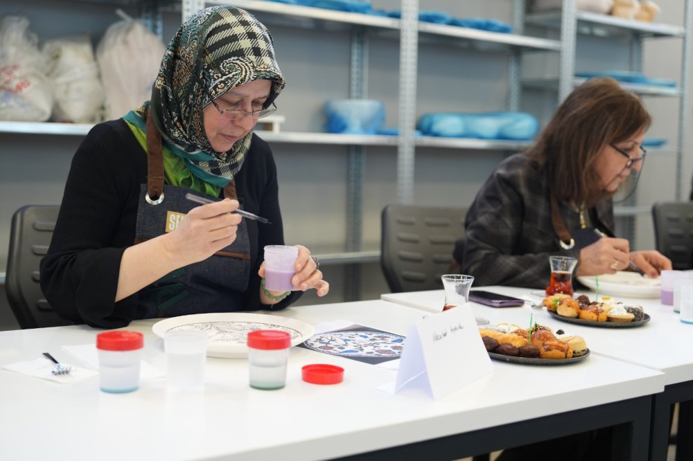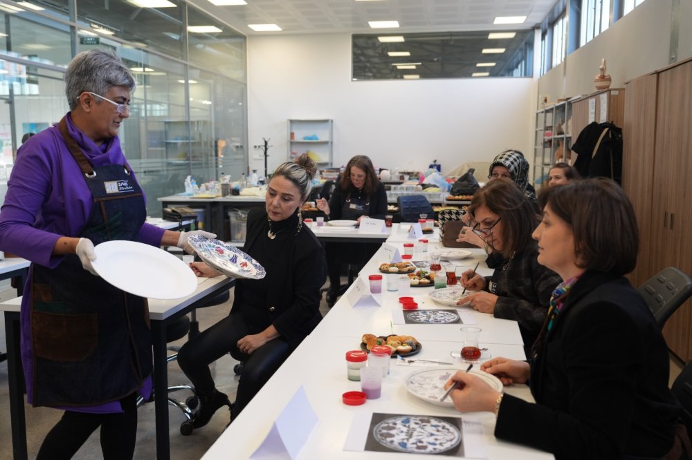Seka Sanat İhtisas Merkezi’ndeki Çini Atölyesine konuk olan protokol eşleri ve Kocaeli Üniversitesi akademisyenleri, nadide sanatı yakından tanıma imkanı buldu.