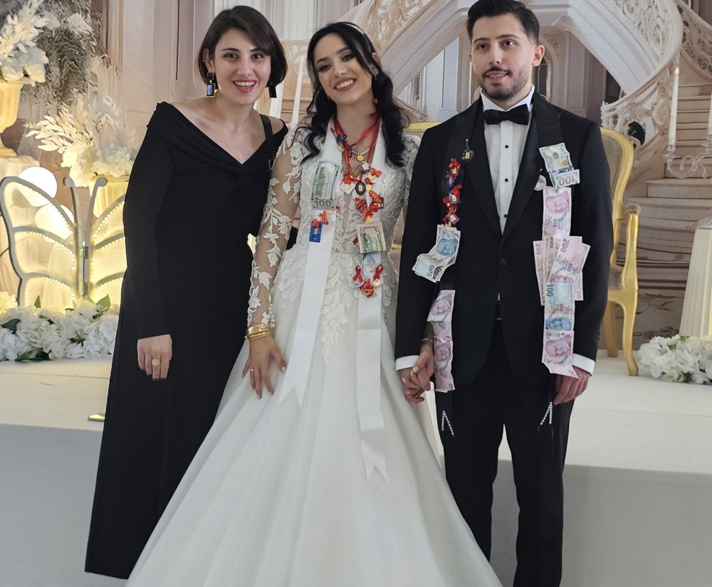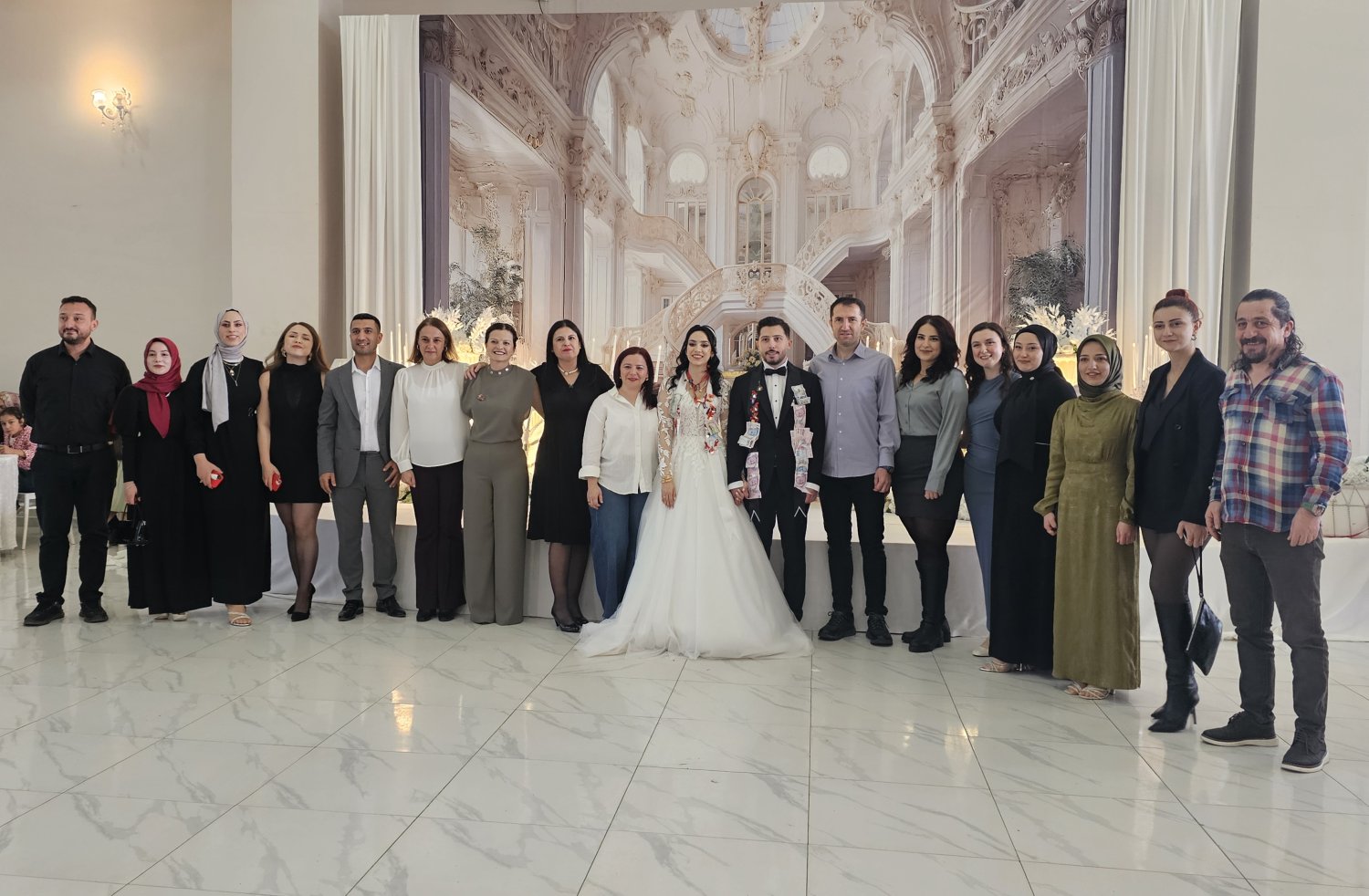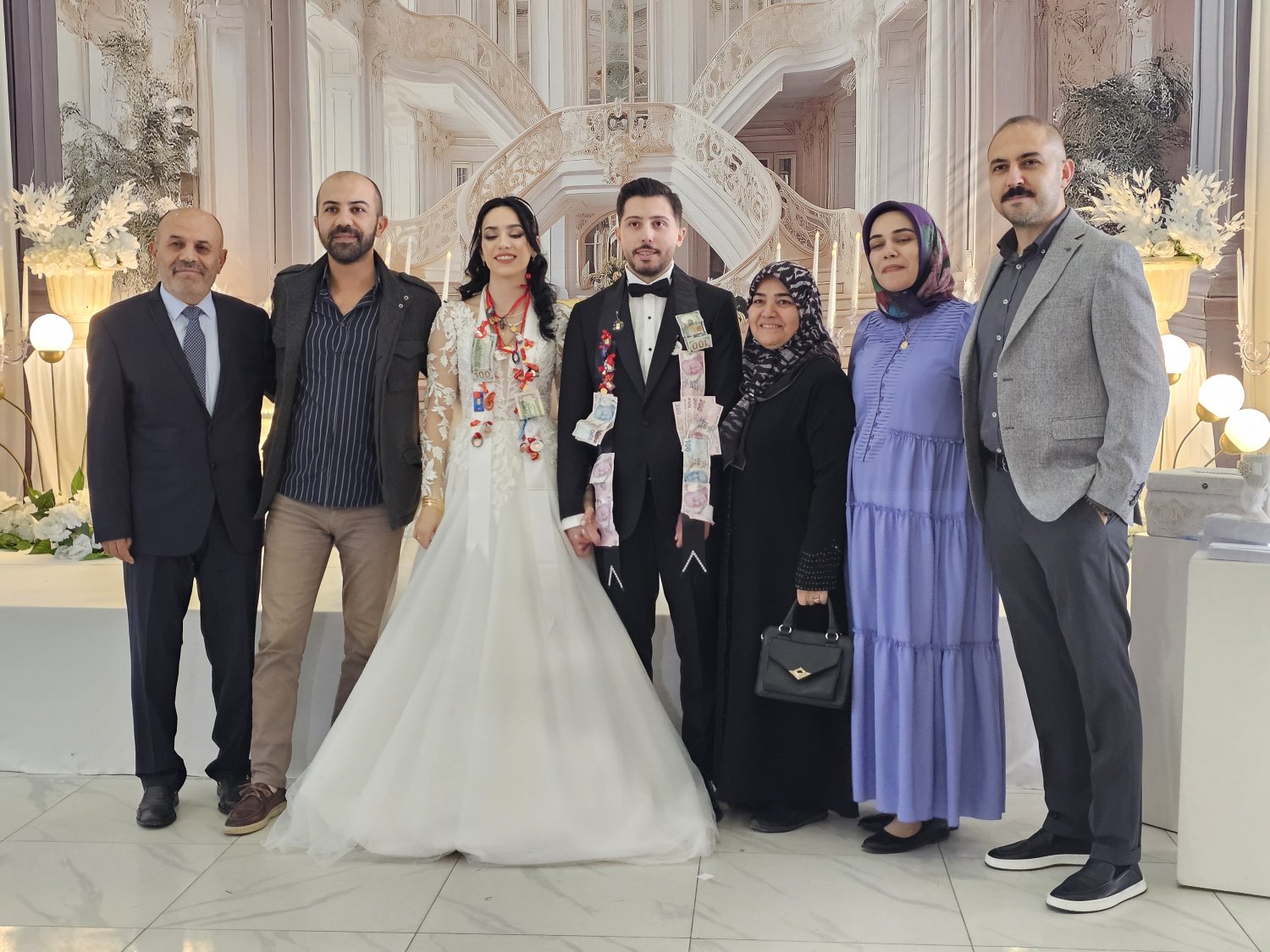 Yenikent Sosyal Tesisleri’nde düzenlenen düğünde genç çiftin mutluluğuna aileleri, meslektaşları ve çok sayıda davetli ortak oldu. Düğün boyunca genç sağlık çalışanlarının üzerine adeta para yağdı, renkli görüntüler yaşandı.