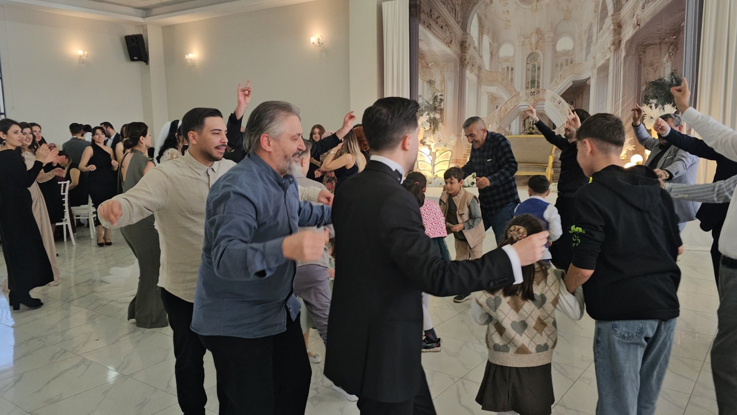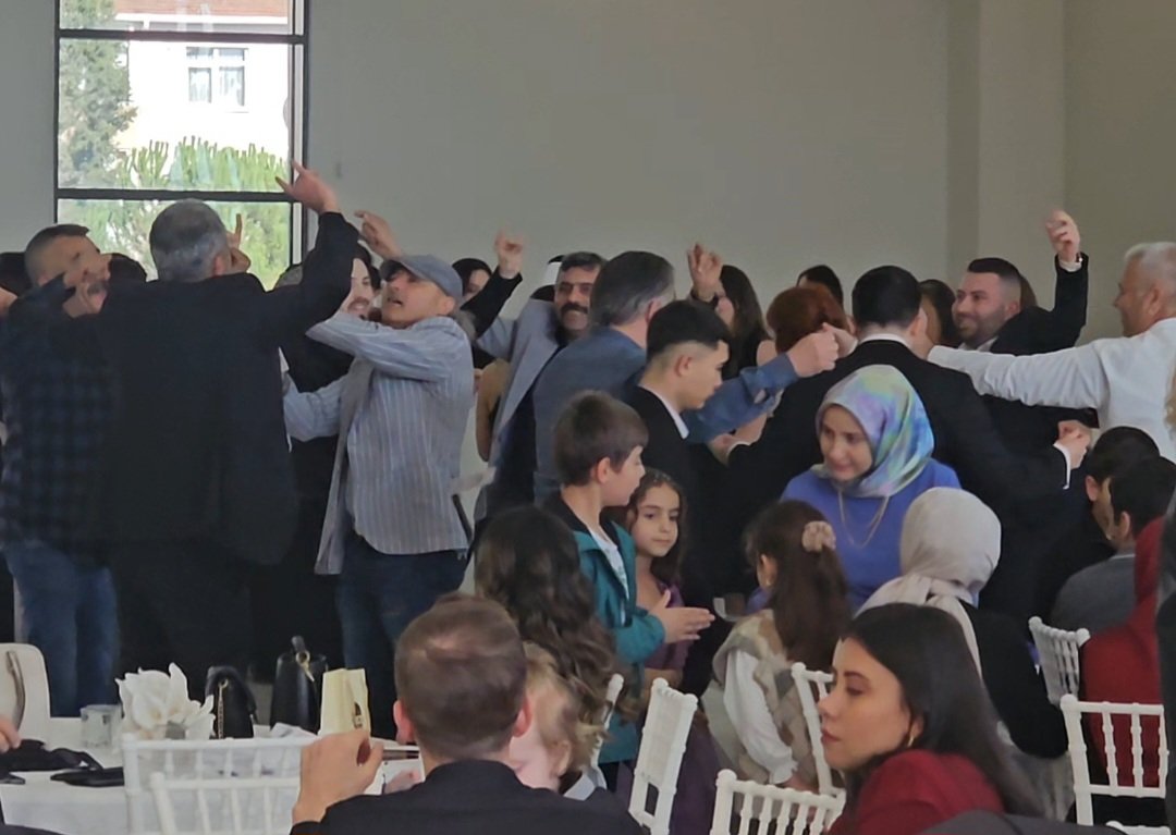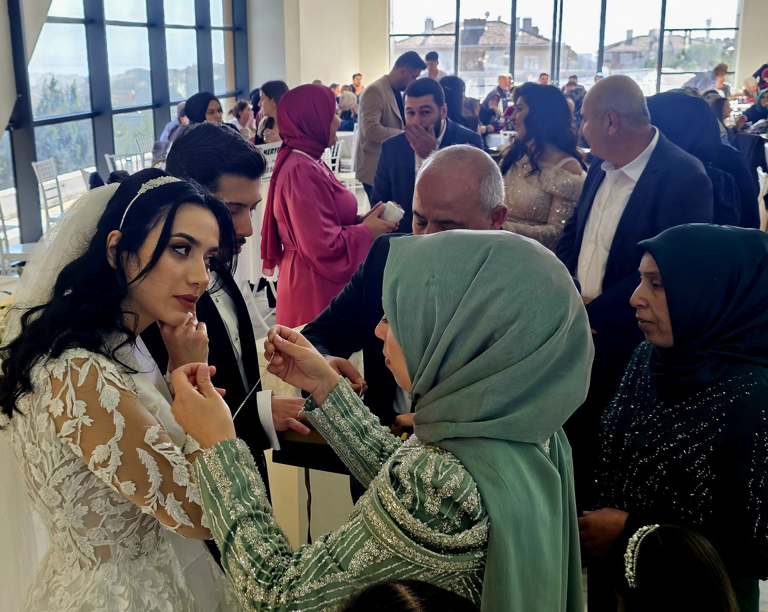 Yenikent Sosyal Tesisleri’nde düzenlenen düğünde genç çiftin mutluluğuna aileleri, meslektaşları ve çok sayıda davetli ortak oldu. Düğün boyunca genç sağlık çalışanlarının üzerine adeta para yağdı, renkli görüntüler yaşandı.