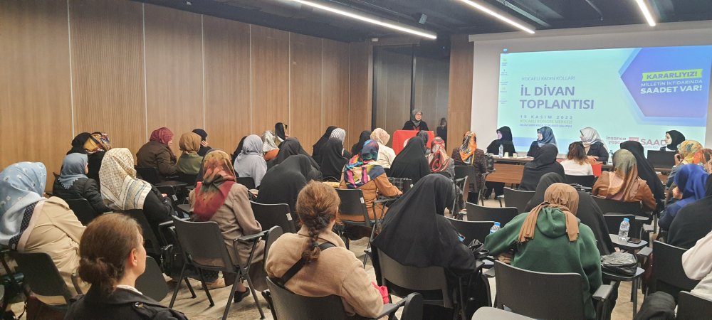 Saadet Partisi Kocaeli Kadın Kolları kasım ayı il divan toplantısını, il ve ilçe yönetim kurulu üyelerinin katılımıyla Selim Sırrı Paşa Toplantı Salonunda gerçekleştirdi. Ekim ayı çalışmalarının değerlendirildiği ve yeni çalışma hedeflerinin verildiği toplantının açılış konuşmasını İl Kadın Kolları Başkanı Reyhan Şengün yaptı.
