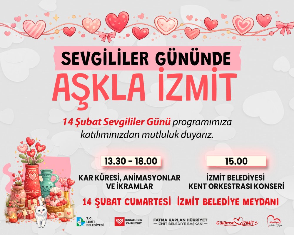 İzmit Belediyesi, 14 Şubat Sevgililer Günü’nde Belediye Meydanı’nda gün boyu sürecek etkinliklerle kent merkezini sevgi temalı bir festival alanına dönüştürecek.