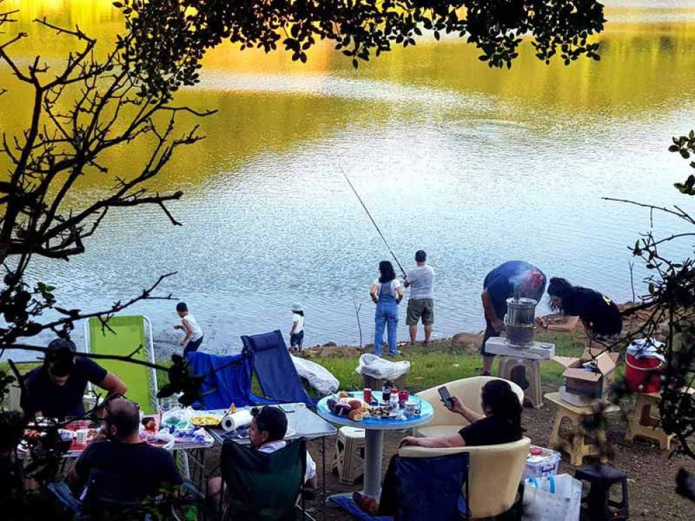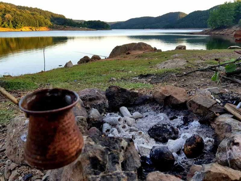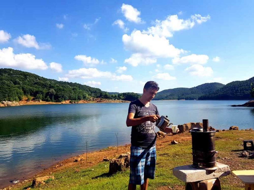 Akşam üzeri çadırlarımızı orman göl manzaralı orman içerisine çadırları kurduktan sonra sahilde ateşimizi yaktık, mangalımızı ve en önemlisi közde kahvemizi kamp ateşi sohbetiyle içtik. Bir yandan semaverdeki çayımız kaynarken, doğanın akşam serinliğinde sohbetimizi yaptık. Kamp keyfi bu olsa gerek.