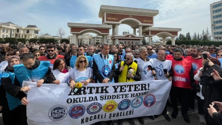 Şanlıurfa’nın Siverek ilçesinde bir lisede yaşanan silahlı saldırıya tepki gösteren Kocaeli’deki eğitim sendikaları iş bırakma eylemi gerçekleştirdi. Çok sayıda öğretmen, İzmit’te bir araya gelerek saldırıyı protesto etti.