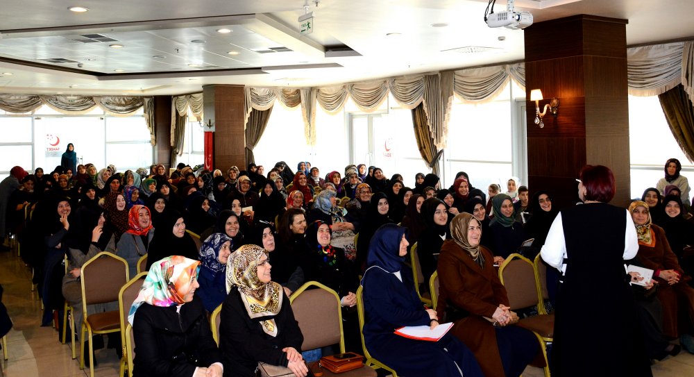 Programda konuşan İl Kadın Kolları Başkanı Reyhan Şengün, toplumda aile yapısının öneminden bahsetti. Şengün, “Aile yapısının bozulması ve ihmali topluma, maddi manevi altından kalkılamaz yük getirir. Sorunları çözümlenemeyen ailelerde boşanmalar artmakta, beraberinde, sokakta yaşayan insan sayısında artış olmakta, aile içinde şiddet ve cinayet sayısı, suç işleme oranları artmakta, ekonomik olarak ihtiyaçlı hale gelinmekte ve tek gerçek; tüm aile bireylerinde mutsuzluk oluşmaktadır.