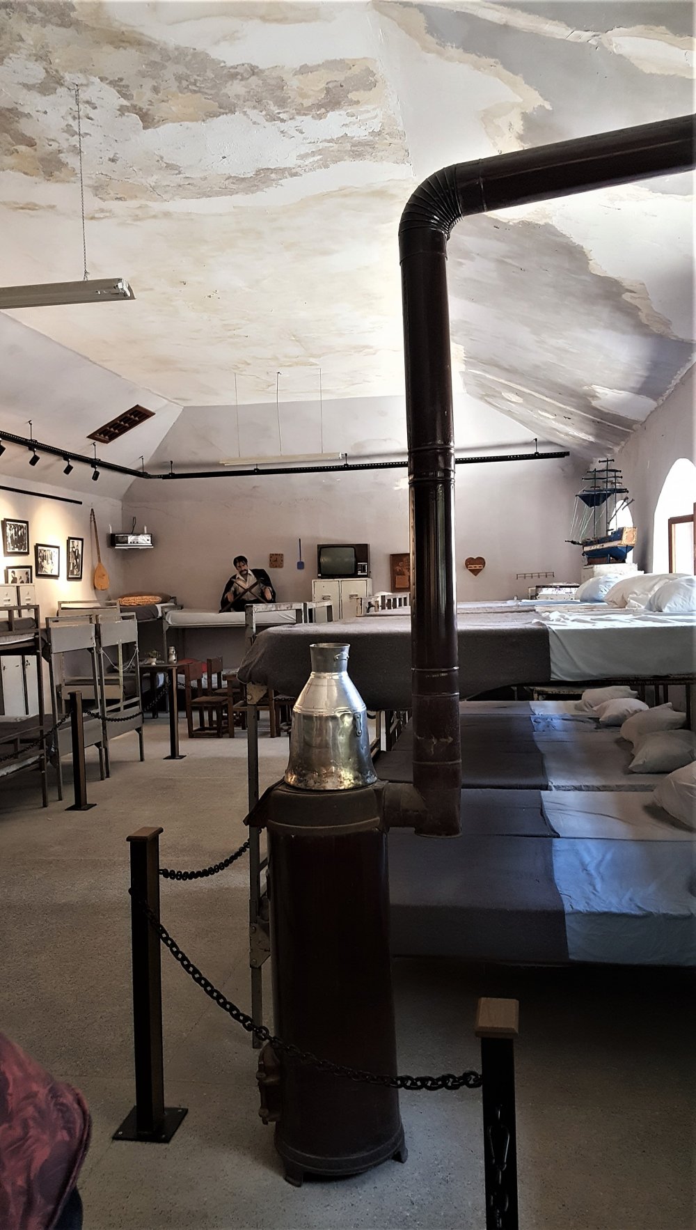 Hücrelerin ardından sıra koğuşlara geliyor. Koğuşlar da o günkü koşullara uygun olarak düzenlenmiş. Bu düzenlemeler titizlikle yürütülen çalışmalar sonunda Ulucanlar’ın tarihindeki hemen her dönemi anlatacak materyallerle tamamlanmış. Düzenlemesi titizlikle yapılan koğuşlarda demir ranza ve dolaplar, tahta masa ve sandalyeler, eski bir soba ve pek çok eşya dikkat çekiyor. Koğuşlardaki görsel zenginlik balmumu heykellerle tamamlanıyor. Bir mahkum sazın tellerine vuruyor, bir türkü duyar gibi oluyorsunuz. Bir mahkum efkarla yudumluyor çayını, bir başkası yatağına uzanmış özgürlüğün hayalini kuruyor sanki. Titiz bir araştırma ile elde edilen tüm eşyalar, balmumu heykellerin yarattığı etki ile birleşince koğuşlar, eski Türk filmlerindeki hapishane görüntülerini andırıyor. Yılmaz Güney’in Ulucanlar’daki anılarından esinlenerek gerçekleştirdiği Duvar filmi ya da Feride Çiçekoğlu’nun Ulucanlar’da çektiği Uçurtmayı Vurmasınlar Filmi’nden bir kare izliyormuş hissine kapılabiliyorsunuz bir anda.