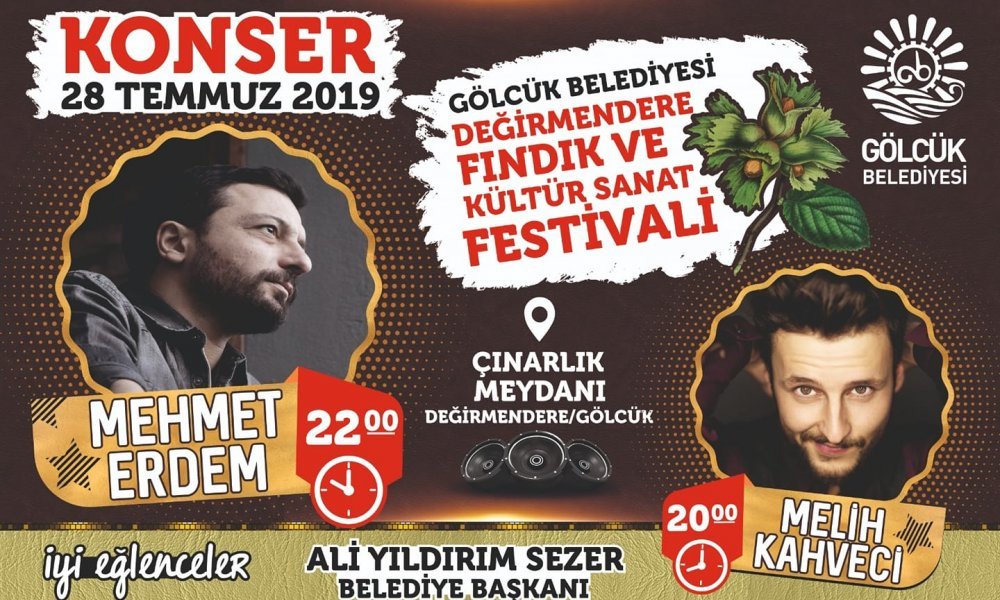 Gölcük Belediye Başkanı Ali Yıldırım Sezer Yaptığı Açıklamada, “Söz Verdiğimiz Gibi Değirmendere Fındık, Kültür Ve Sanat Festivalini 28 Temmuz Pazar Günü Gerçekleştireceğiz. Halkımızdan Bu Yönde Yoğun Talepler Almıştık Bu Talepler Karşılığında Festivali Yapmanın Mutluluğunu Yaşıyoruz. Ülkemizde Geniş Kesim Tarafından Sevilen Sanatçı Mehmet Erdem İle İlçemizin Önemli Sesi Melih Kahveci Festival Kapsamında Sahne Alacak. Ben Tüm Kocaeli Halkını Festivalimize Davet Ediyor, Şimdiden İyi Eğlenceler Diliyorum” Dedi.